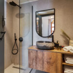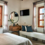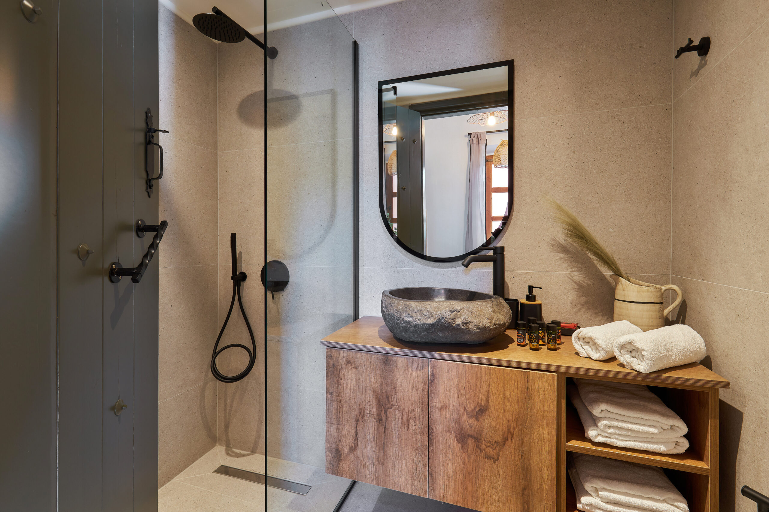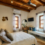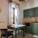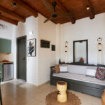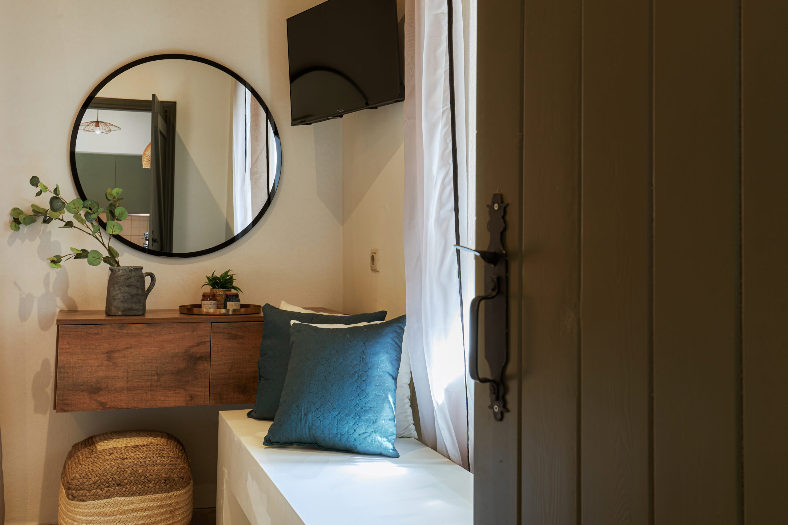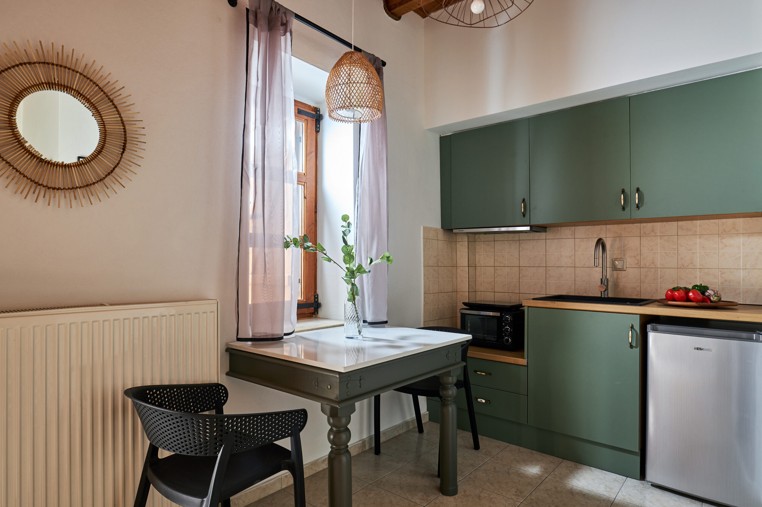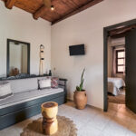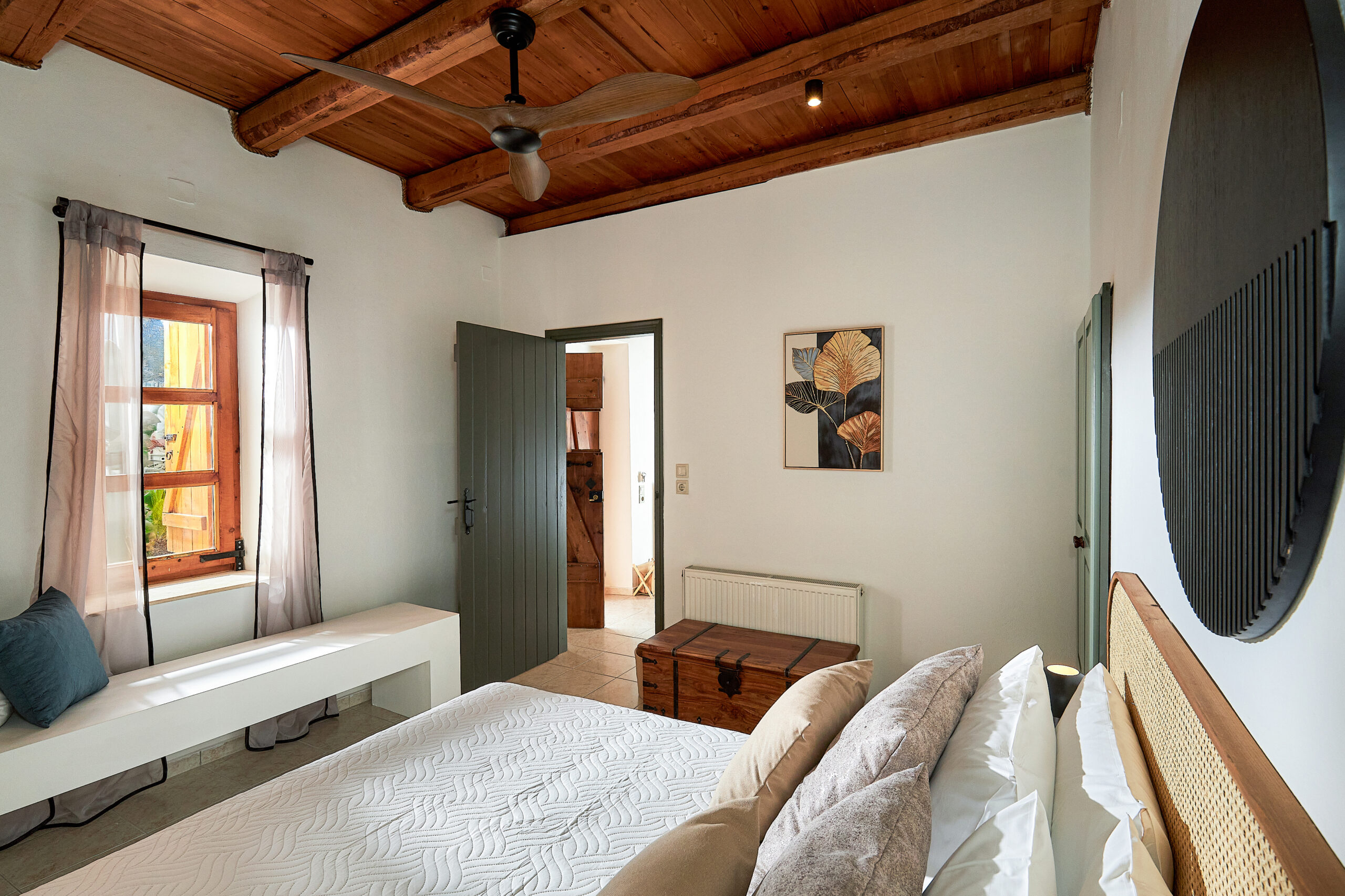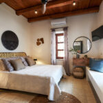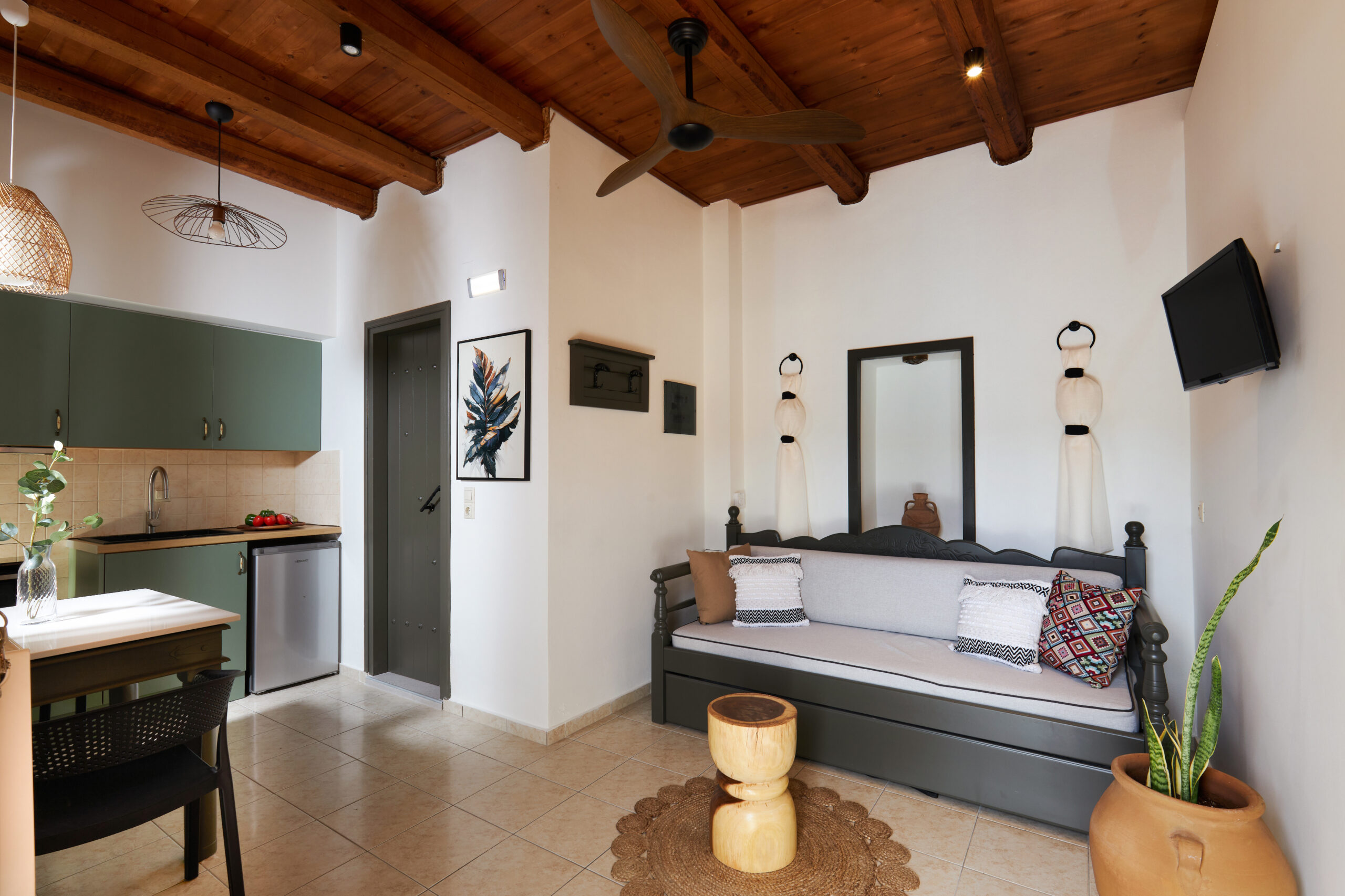 Η διακόσμηση του διαμερίσματος παραπέμπει στη γνήσια κρητική αισθητική με ξύλινα ταβάνια, χειροποίητα ξύλινα έπιπλα, παραδοσιακά υφαντά,κεντητά και πίνακες.