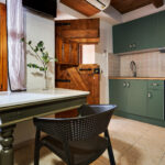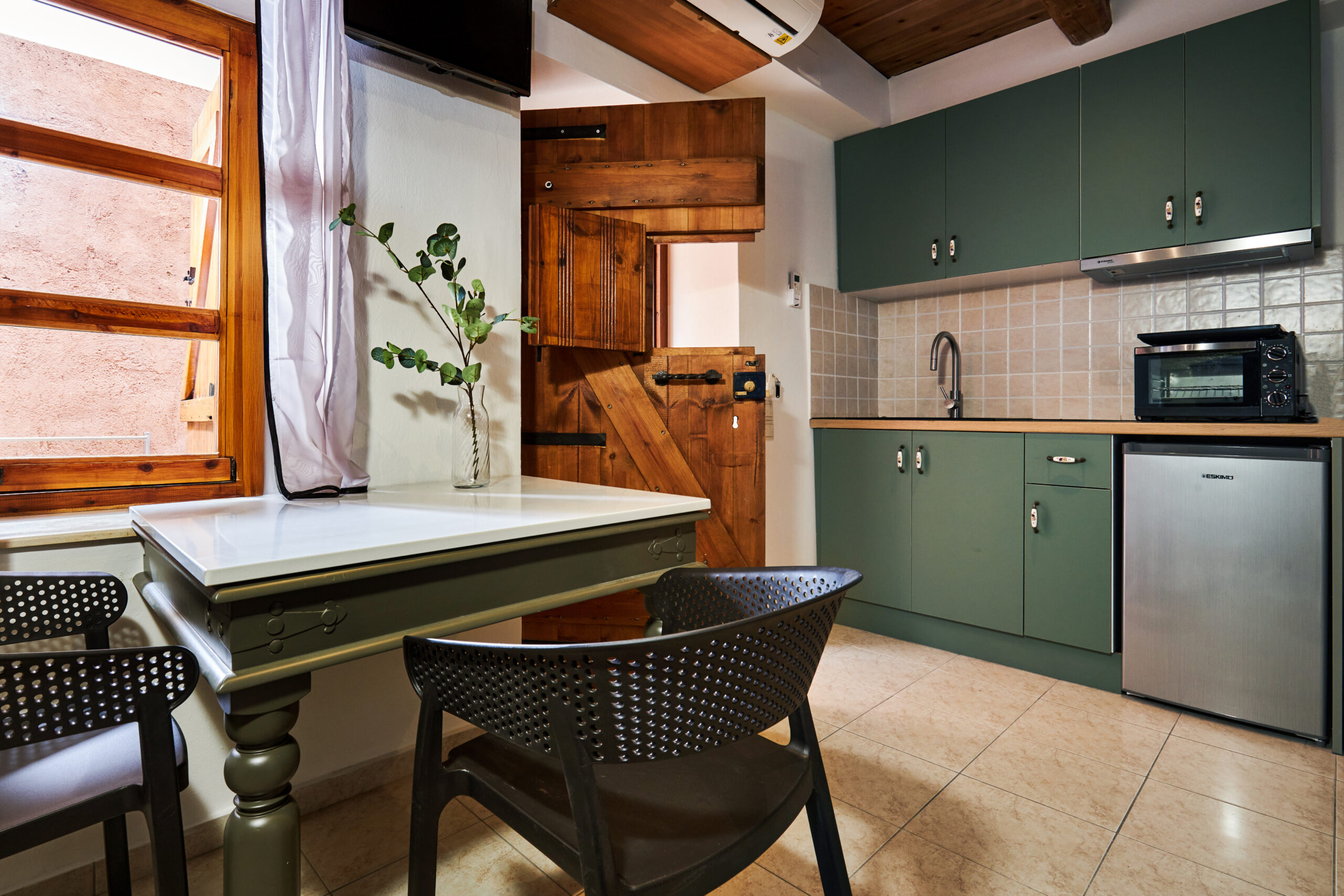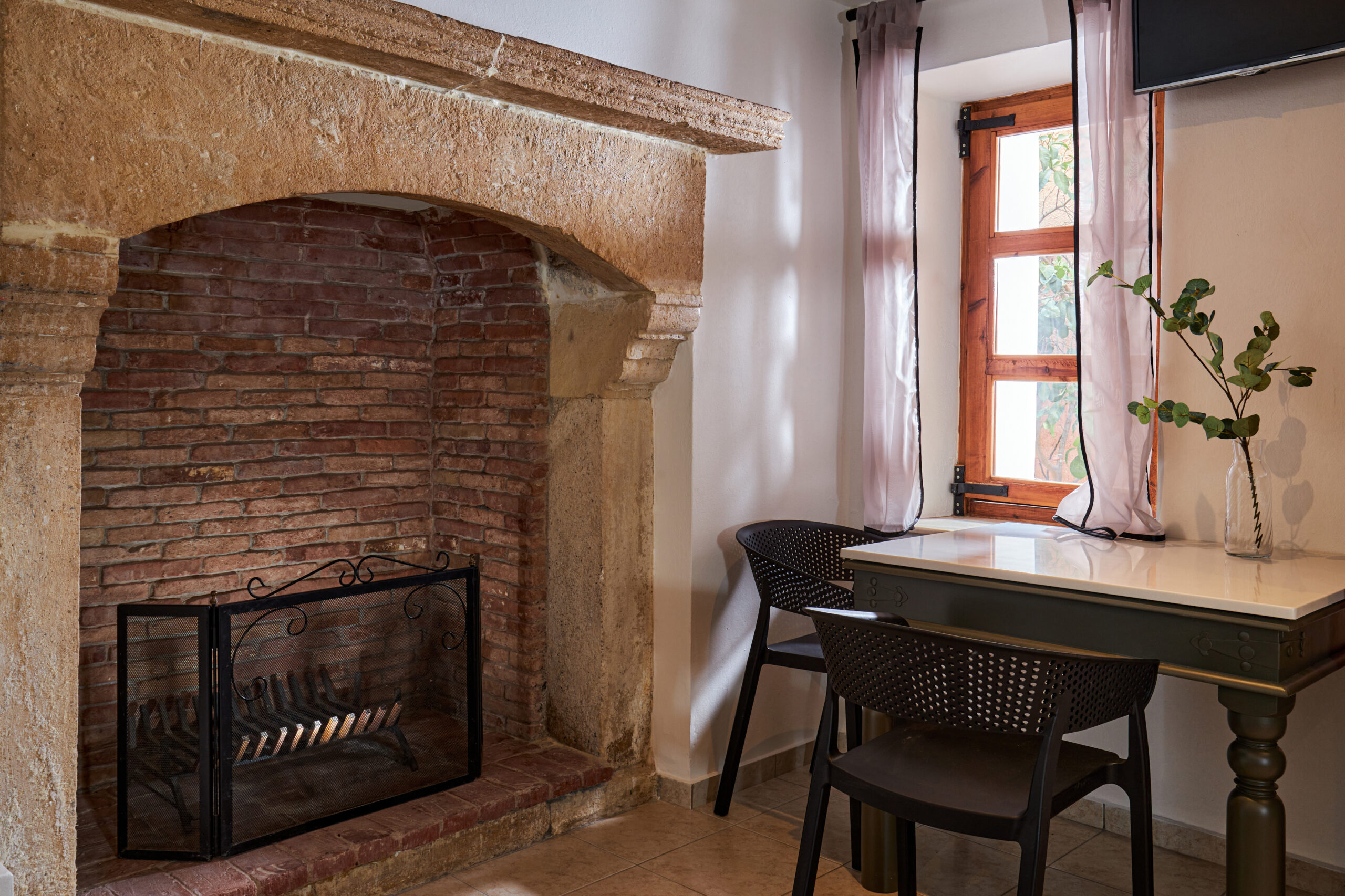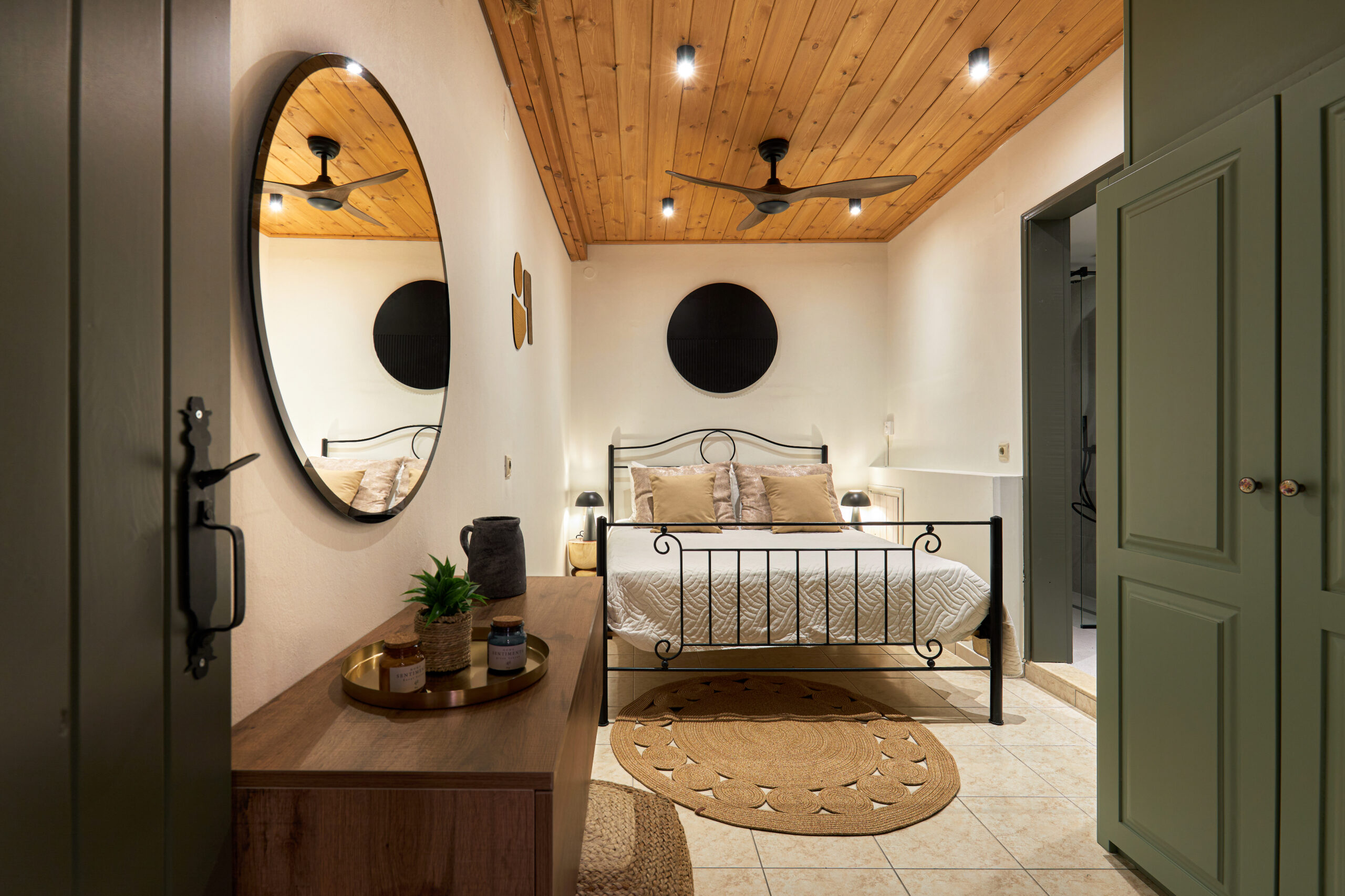 Η διακόσμηση του διαμερίσματος παραπέμπει στη γνήσια κρητική αισθητική με ξύλινα ταβάνια, χειροποίητα ξύλινα έπιπλα, παραδοσιακά υφαντά,κεντητά και πίνακες.
