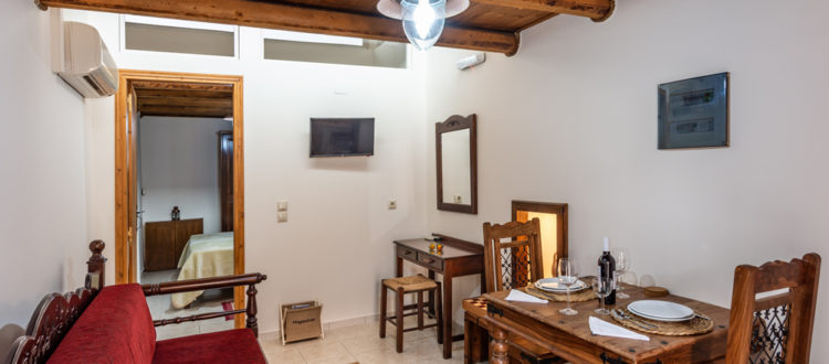 The decoration of the apartment is genuine Cretan style with wooden ceilings, handmade wooden furniture, traditional weaving, embroidery and paintings.
