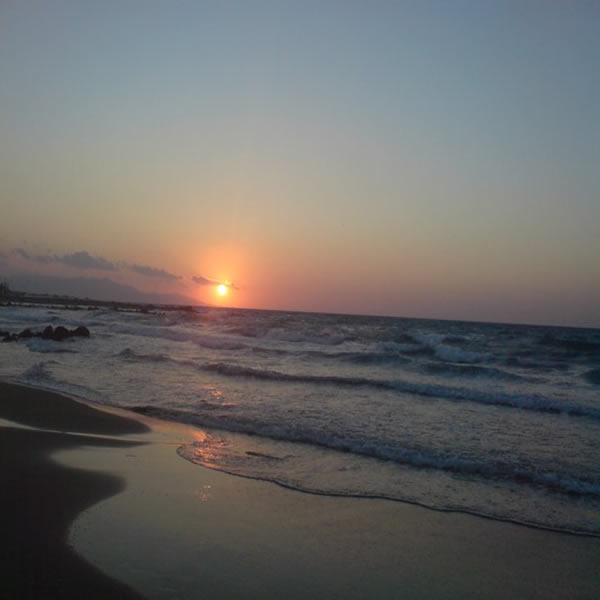 - Mononaftis strand met zand en grind 20 km ten westen van Heraklion.