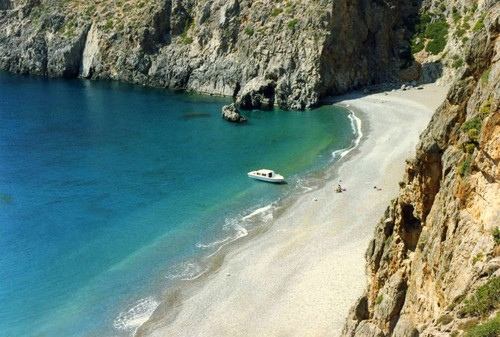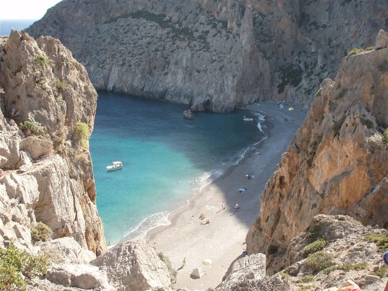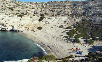 - Ayiofarango (De kloof van de Heiligen), wordt het kiezelstrand toegankelijk te voet door de kloof of per boot van Kaloi Limenes poort. Een uitstekend strand beschermd tegen de wind, maar met geen faciliteiten. Het strand is zo nu en kleding optioneel.