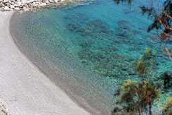 - Dermatos is een kiezelstrand met veel tamarisk bomen.