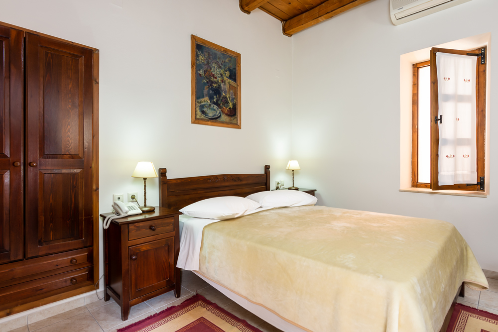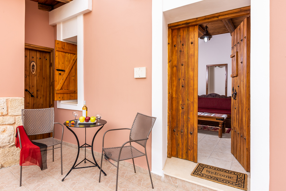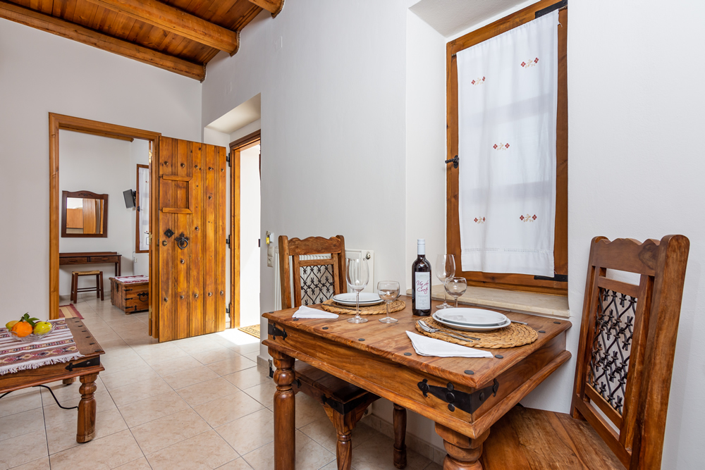 Отделка квартира с подлинным критским стилем с деревянными потолками, деревянной мебелью ручной работы, традиционным плетением, вышивкой и картинами.