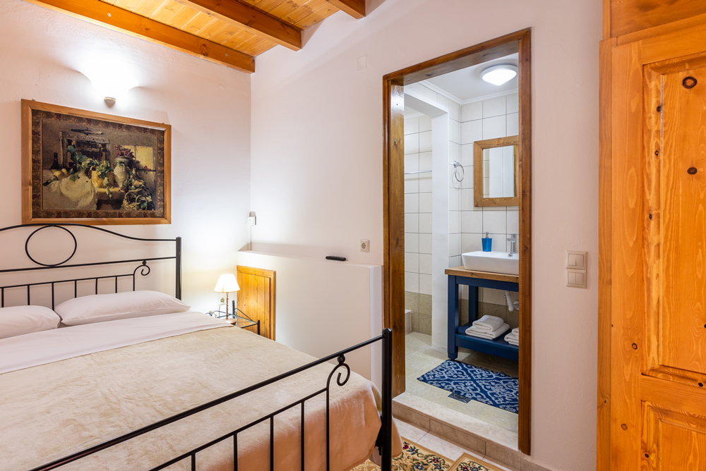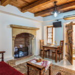 Отделка квартира с подлинным критским стилем с деревянными потолками, деревянной мебелью ручной работы, традиционным плетением, вышивкой и картинами.