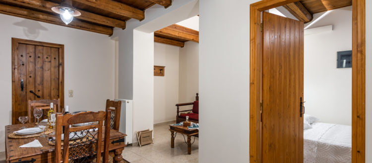 Отделка квартира с подлинным критским стилем с деревянными потолками, деревянной мебелью ручной работы, традиционным плетением, вышивкой и картинами.